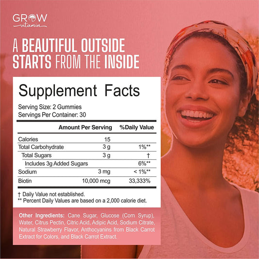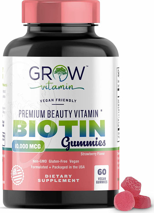 Biotin Gummies 10,000mcg [Highest Potency] for Healthy Hair, Skin and Nails for Adults and Kids - 5000mcg in Each Gummy Vitamin - Vegan, Non-GMO, Strawberry, Pectin-Based Hair Growth Supplement (60 Ct)