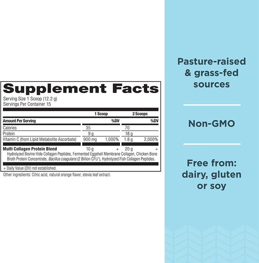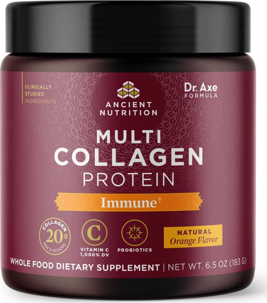 Collagen Powder Protein with Vitamin C by Ancient Nutrition, Multi Collagen Protein Immune, Orange, Supports Immune System, Healthy Hair, Skin and Nails, 15 Servings
