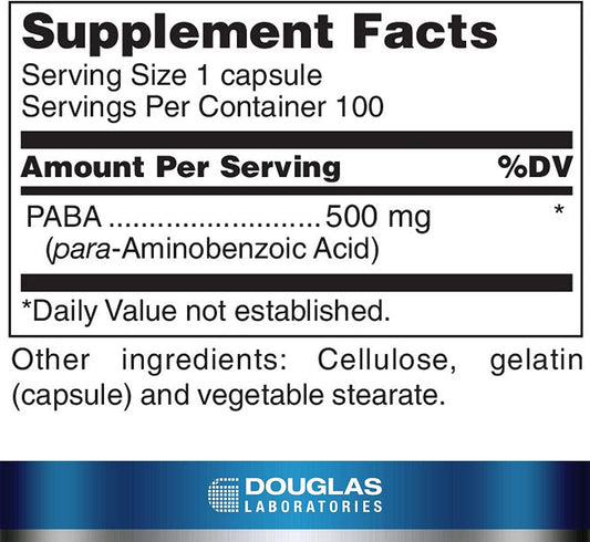 Douglas Laboratories PABA (500 mg.) | Antioxidant Properties to Support Healthy Skin and Hair | 100 Capsules