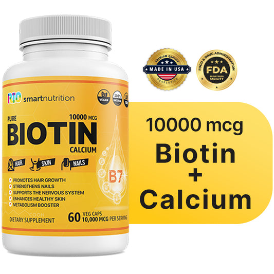 Biotin Pure & Calcium Supplement, 60 Vegan Capsules, for Hair, Skin, Nails, Bones, and Teeth by Rio