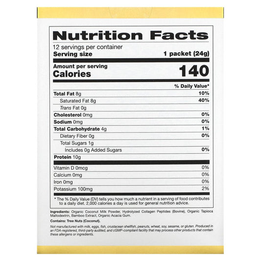 Collagen Coconut Creamer, Unsweetened, 12 Packets 0.85 Oz (24 G) Each