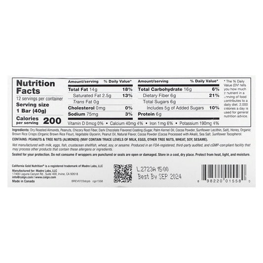 California Gold Nutrition FOODS, Double Chocolate Peanut Butter Flavor Bars, 12 Bars, 1.4 Oz (40 G) Each