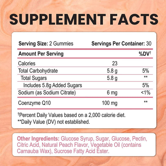 CoQ10 Gummies High Absorption Coenzyme Q10 Supplement, Chewable CoQ10 Gummy 100mg for Heart and Energy Support, Tasty Peach Flavor, 60 Gummies