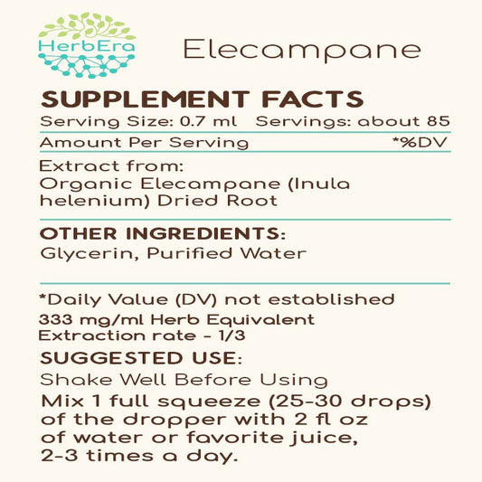 Elecampane Alcohol-Free Herbal Extract Tincture, Super-Concentrated Organic Elecampane (Inula Helenium) Dried Root 2 Oz