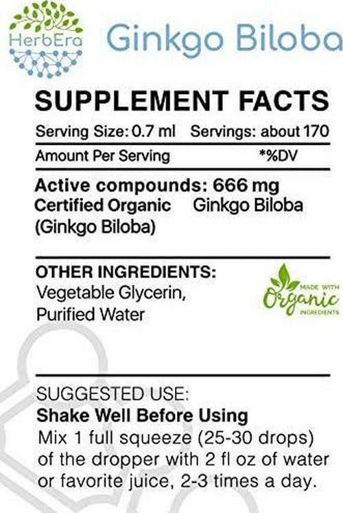 Ginkgo Biloba B120 Alcohol-Free Herbal Extract Tincture, Super-Concentrated Organic Ginkgo Biloba (Ginkgo Biloba) Dried Leaf 4 fl oz