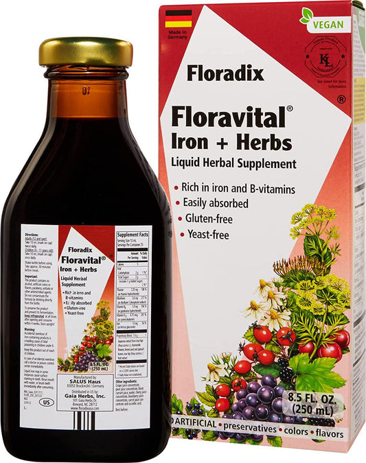 Floradix, Iron and Herbs Vegetarian Liquid Supplement for Energy Support, 8.5 Oz