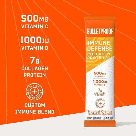 Bulletproof Sugar-Free Immune Defense Tropical Orange Flavored Collagen Protein Packets, 14 Count, Keto-Friendly Collagen Protein with Vitamins C and D
