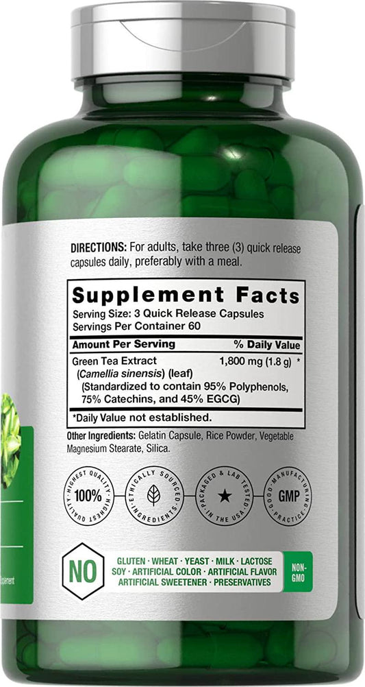 EGCG Green Tea Extract Pills | 1200 mg 180 Capsules | Max Potency | Non-GMO and Gluten Free Supplement | by Horbaach