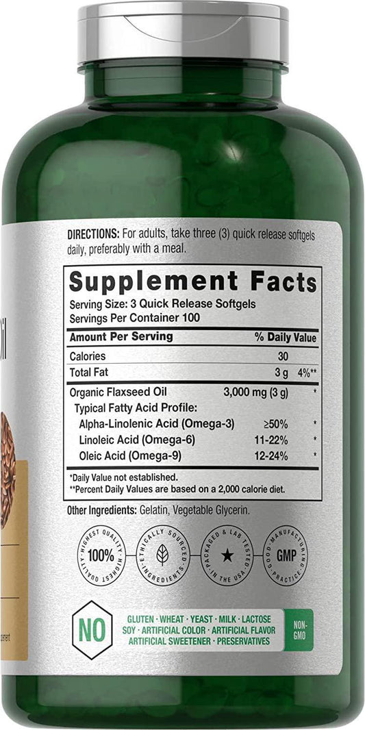 Flaxseed Oil Softgels 3000mg | 300 Count | High Potency | with Omega 3 6 9 | Non-GMO, Gluten Free | Cold Pressed Flax Seed | by Horbaach