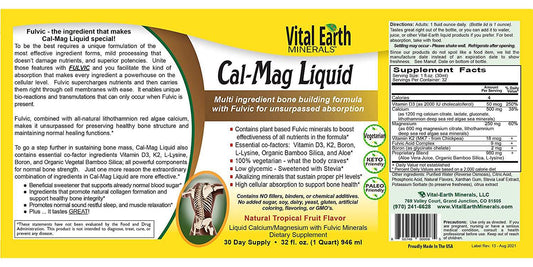 Cal-Mag Liquid 32 Fl. Oz. - 1 Month Supply- High Potency - Sugar Free - Vegetarian - Liquid Calcium Magnesium Bone Maintenance Supplement WITH Fulvic, By Vital Earth Minerals