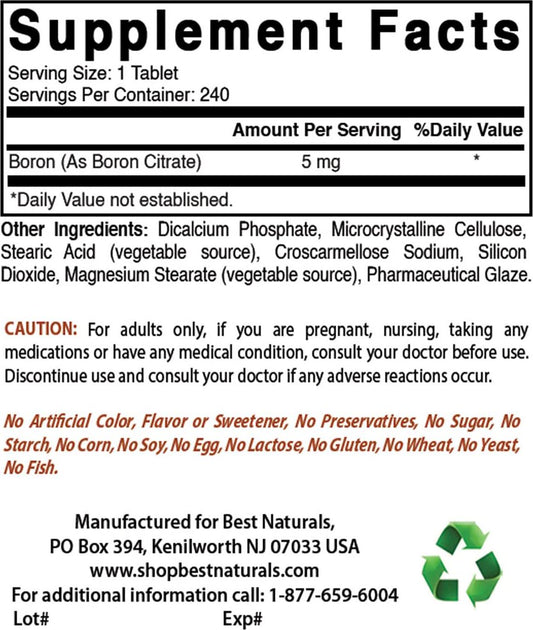 Best Naturals Boron Supplements 5 mg 240 Tablets (240 Count (Pack of 1))