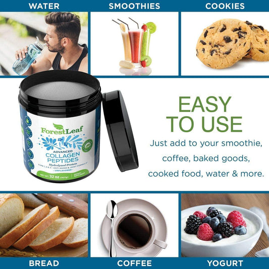 Advanced Hydrolyzed Collagen Peptides - Unflavored Protein Powder - Mixes Into Drinks and Food - Pasture Raised, Grass Fed - for Paleo and Keto; Joints and Bones - 41 Servings Collegen - by ForestLeaf
