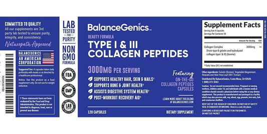 BalanceGenics Collagen Capsules | Convenient Capsule Form, Highly Absorbable Hydrolyzed Collagen Peptides, Type I and III, Grass-fed Bovine, Non-GMO, Soy-Free, Dairy-Free, Gluten-Free