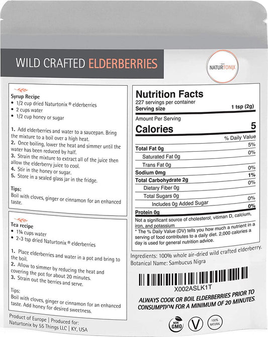 Dried Elderberries | 100% Natural European Whole Wild Crafted Elder Berry (Sambucus nigra) 8 Ounce Resealable Pouch