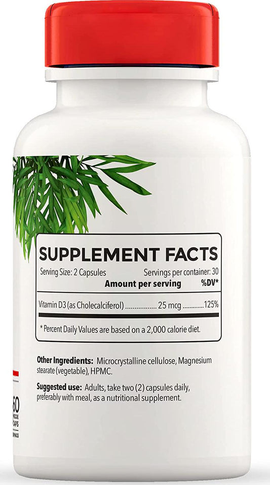 Full Life Vitamin D3 Supplements - Promote Immune Health - Strong Bone and Muscles, Joint Health - 100% Natural Capsules - 60 Veggie Capsules 25 mcg, 1000IU per Serving