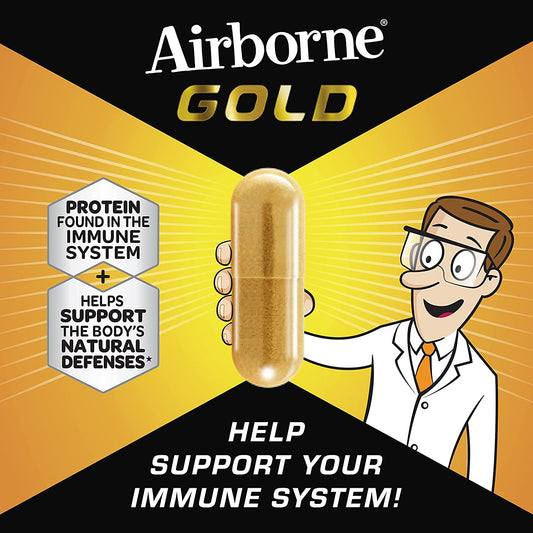 Airborne Gold Lactoferrin 300mg (per serving) Capsules (60 count in a bottle), Immune Support Supplement That Helps Support The Body's Natural Defenses, with Protein Found In The Immune System