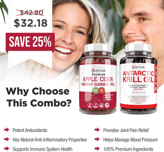 2x Advanced Immunity Detox Bundle - Apple Cider Vinegar and Krill Oil, Natural Ultra Absorption Supplements, ACV With Mother, Astaxanthin Standard EPA DHA, For Heart Health, Joint Relief, Immune Support