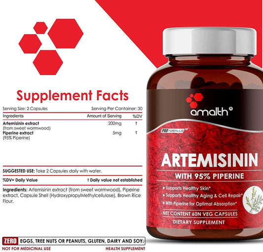 Artemisinin 205 mg- Artemisia Annua- Sweet Wormwood Extract 60 Capsule Vegan Safe, Supports Healthy Aging, Digestion and Immunity Made by Amalth