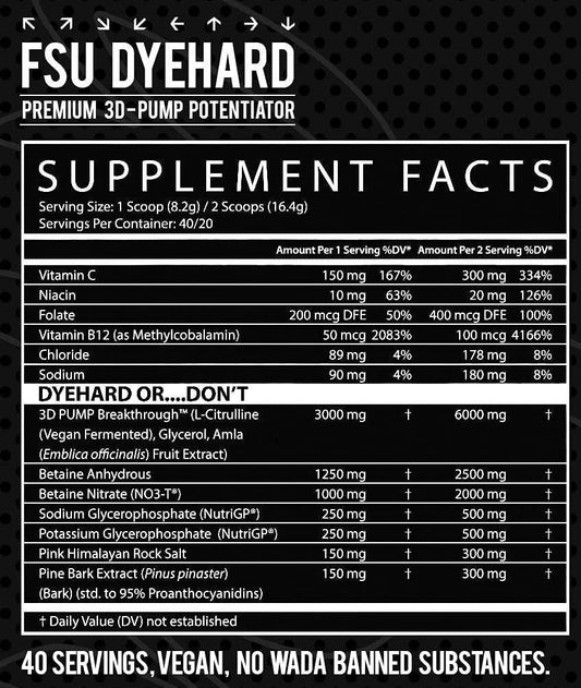 FSU DYEHARD Non-Stim Pre-Workout | 3D Pump + NutriGP + NO3-T Nitrate | by Inspired Nutraceuticals (Sonoran Sunset)