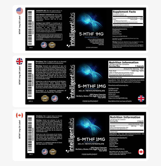 1MG 5-MTHF, MethylFolate by Intelligent Labs, 120 Capsules, 4 Months Supply, Best Value Folic Acid Supplement as Quatrefolic Acid, Acitvated Folate, 1MG = 1000mcg, 5 methyltetrahydrofolate
