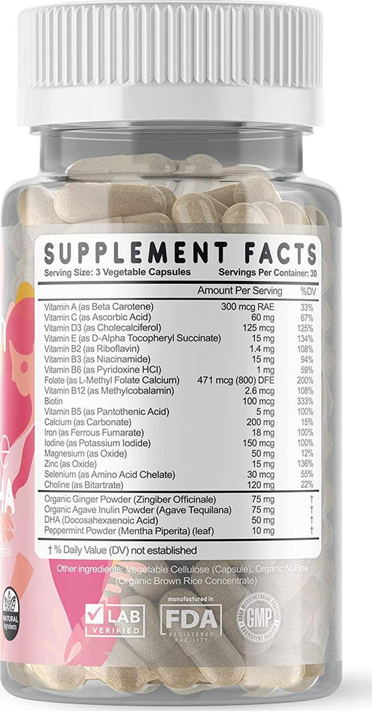 Feed Mom and Me Prenatal Vitamin + DHA, 22 Vitamins and Minerals for Baby’s Development and Mom Nourishment: Folate, Selenium, Iron, Choline, Vitamin C, D3, Calcium, Gluten and Soy Free, NON-GMO 30 Day Supply