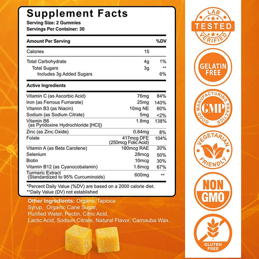 2 Pack Iron Gummies for Women and Men | Turmeric, Vitamin C, Folic and Vitamin B Complex, 25mg Iron Supplement for Iron Deficiency and Boost Hemoglobin - Vegan, Anti-inflammatory, Grape Flavor, 120 Count