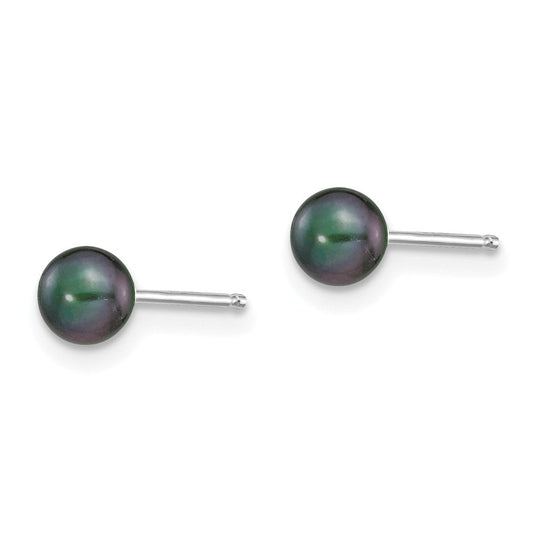 14K White Gold 4-5Mm Black round FW Cultured Pearl Stud Post Earrings XW40PB