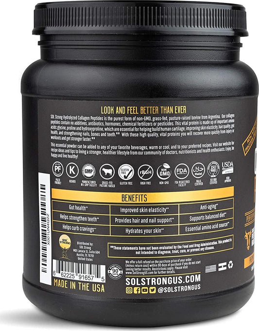 Collagen Peptides Protein Powder Sol Strong Collagen Powder Pasture-Raised, Non-GMO and Grass-Fed Hydrolyzed Collagen Peptides, Gluten-Free Certified Paleo, Keto and Whole 30 Friendly 20oz USA Extra Large