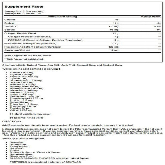 Great Lakes Quick Dissolve Collagen Peptides Daily Wellness Joint Powder, Classic Caramel (8 Oz)