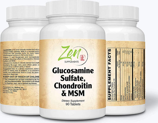 Glucosamine Chondroitin MSM - Natural Joint Pain Relief Supplements for Men and Women with Manganese, Potassium for Joint Health, Cartilage and Connective Tissue, Inflammation Shell-Fish Free - 90 Tab