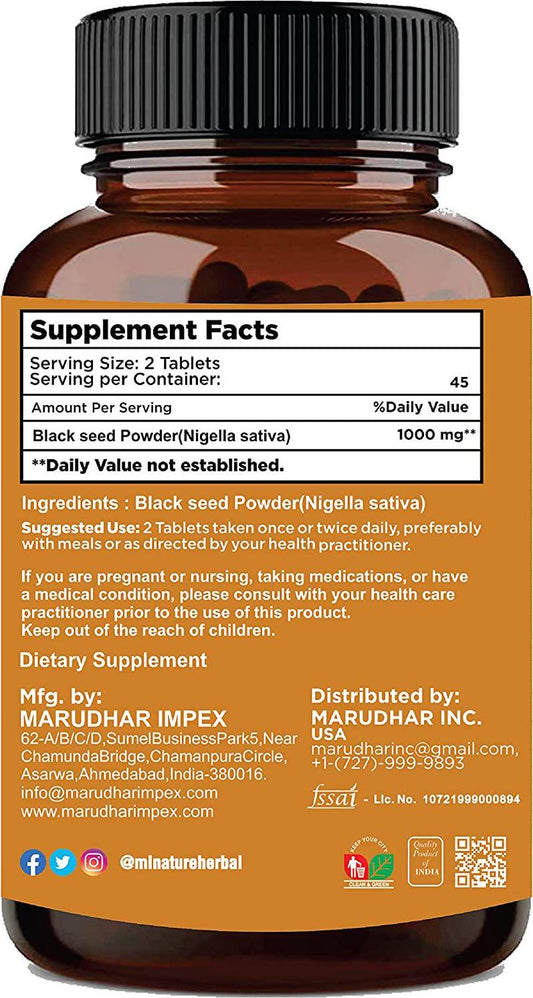 Black Seeds Tablets by mi Nature | 90 Tablets, 1000 mg | 45 Days Supply | Black Seed Tablets | Vegan| Joint Mobility | Digestive aid | Anti-inflammatory|Nigella sativa