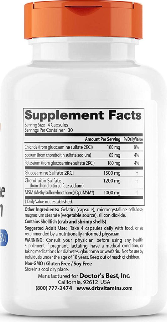 Doctor's Best Glucosamine Chondroitin MSM with OptiMSM, Joint Support, Non-GMO, Gluten Free, Soy Free, 120 Caps