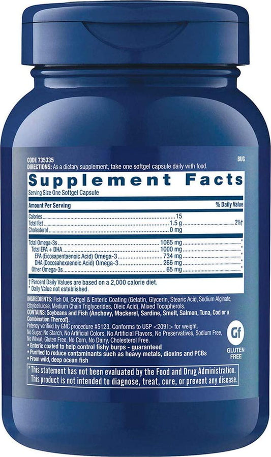 GNC Triple Strength Omega 3 Fish Oil 1000mg, 60 Count, Supports Joint, Skin, Eye, and Heart Health