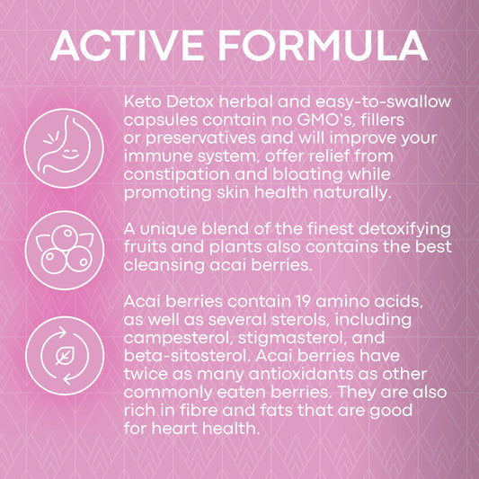 Acoola Keto Detox Pills Advanced Cleansing Extract – Natural Acai Colon Cleanser Formula Using Ketosis & Ketogenic Diet, Flush Toxins & Excess Waste, for Men Women, 60 Capsules