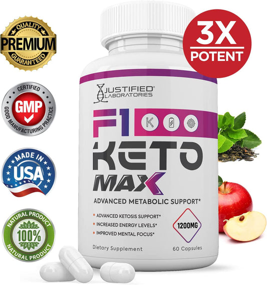 (3 Pack) F1 Keto Max 1200MG Pills Includes Apple Cider Vinegar goBHB Strong Exogenous Ketones Advanced Ketogenic Supplement Ketosis Support for Men Women 180 Capsules