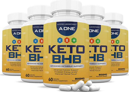 (5 Pack) A One Keto Pills Includes Apple Cider Vinegar goBHB Exogenous Ketones Advanced Ketogenic Supplement Ketosis Support for Men Women 300 Capsules