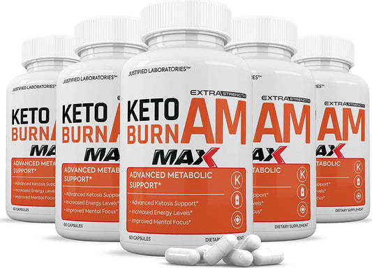 (5 Pack) Keto Burn AM Max 1200MG Pills Includes Apple Cider Vinegar goBHB Strong Exogenous Ketones Advanced Ketogenic Supplement Ketosis Support for Men Women 300 Capsules