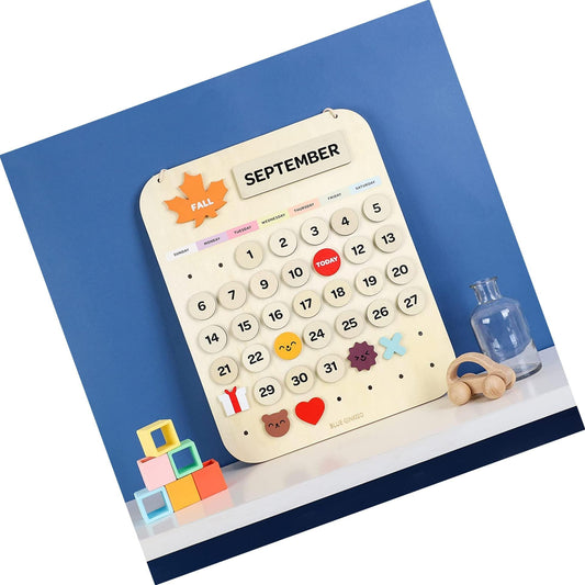 BLUE GINKGO Wooden Kids Calendar - Montessori Calendar for Kids to Learn Seasons, Months and Days of The Week - Daily, Weekly Kids Learning Calendar - Toddler Preschool Calendar (15.5 x 12.5 inches)