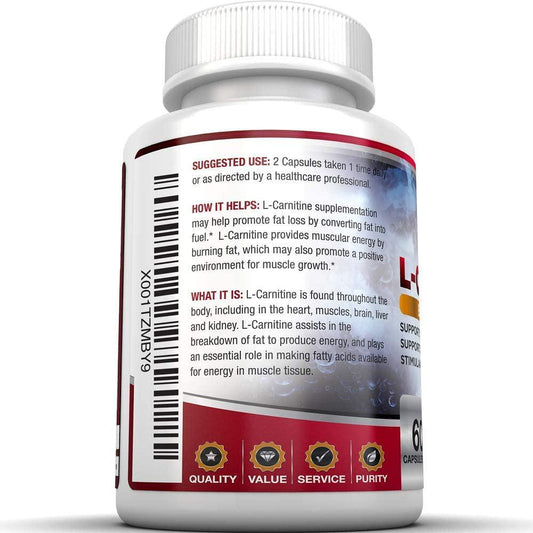 Bulk L-Carnitine, L-Tartrate Capsules, 1000mg, Pack of 90, Packaging May Vary