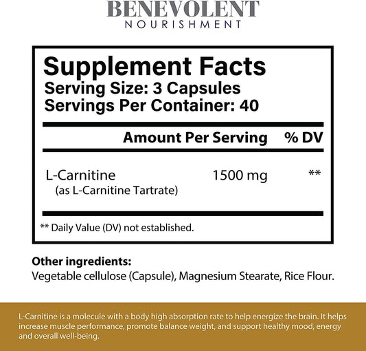 Advanced Strength L-Carnitine Supplement - 1500 MG High Potency L-Tartrate Amino Acids, 120 Veg Capsules, Increased Metabolism, Energy, Performance, Muscle Gain, Supports Memory, Focus Pro L Carnitine
