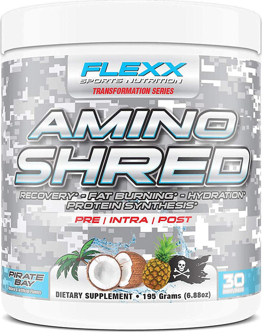 Flexx Amino Shred - Performance Amino Acids with 5 Grams BCAAs, IntraWorkout Muscle Recovery, Fat Burning, Hydration and Protein Synthesis | Pirate Bay, 30 Servings