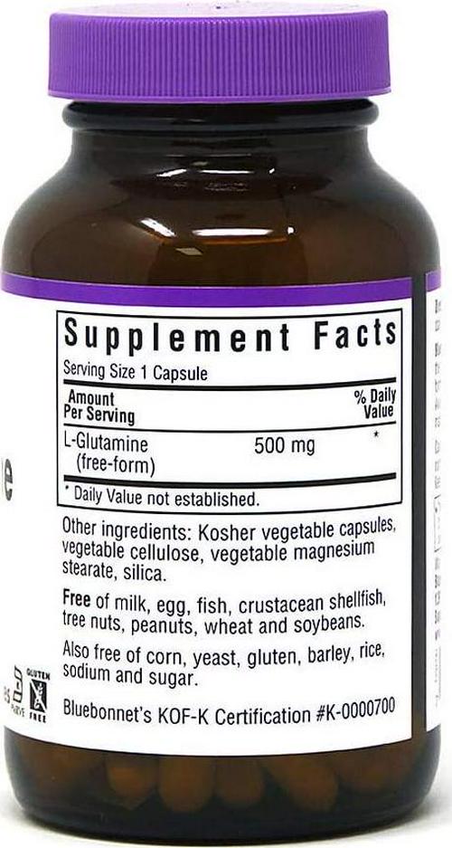 Bluebonnet Nutrition L-Glutamine 500mg, Supports Immune Function*, Nitrogen Transporter*, Soy-Free, Gluten-Free, Non-GMO, Kosher Certified, Vegan, 100 Vegetable Capsules, 100 Servings
