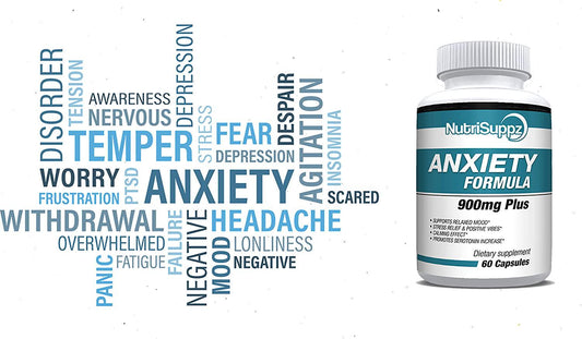 Anti Anxiety Supplement 900mg With Gaba, L-Theanine, 5-HTP, Ashwagandha, Magnesium Oxide, St. John's Wort, Chamomile - Positive Mood, Relaxed Mind, Promote Higher Serotonin, Live In Peace