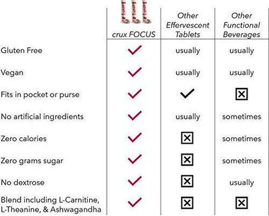 crux FOCUS - Effervescent Drink Tablets for Memory and Brain Focus Including Acetyl L-Carnitine, L-Theanine, and Ashwagandha for a Daily Memory Booster (1 Tube - 8 Servings Per Tube)