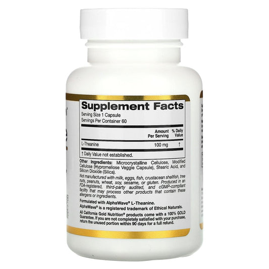 California Gold Nutrition L-Theanine, Featuring Alphawave, 100 Mg, 60 Veggie Capsules