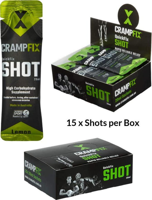 CrampFix Sports Shot, Prevents and Relieves Muscle Cramps in Seconds, Easy Carry Sachets, 15 Pack, All Natural, Lemon