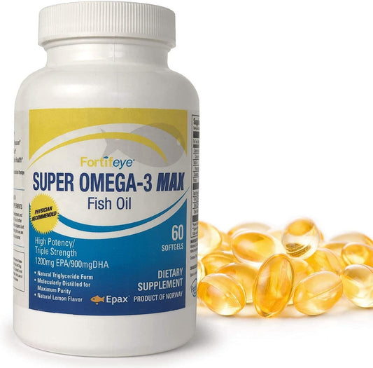 Fortifeye Vitamins Super Omega-3 Max Fish Oil, Lemon Flavor, Natural Triglyceride, 1200 EPA / 900 DHA Per Serv. - 60 Day, 120 Max Softgel Capsules