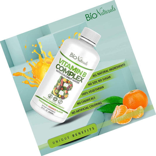 Bio Naturals Vitamin B Complex Liquid Supplement - 100% Natural Energy Boost with Vitamins B1 B2 B3 B5 B6 B12 and Organic Coconut Water for Stress, Mental Focus and Healthy Immune System - 32 fl oz