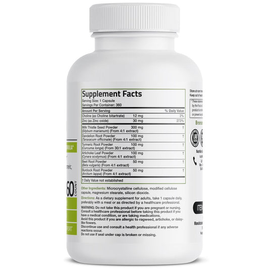 Bronson Liver Detox Advanced Detox & Cleansing Formula Supports Health Liver Function with Milk Thistle, Dandelion Root, Turmeric, Artichoke Leaf & More, Non-Gmo, 360 Vegetarian Capsules