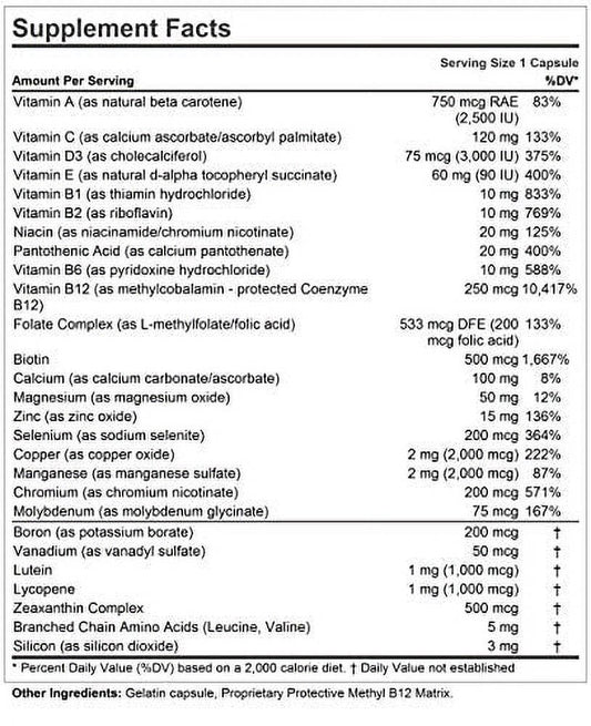 Andrew Lessman Essential-1 Multivitamin 3000 IU Vitamin D3 30 Small Capsules - 250 Mcg Methyl B12. Lutein Lycopene Zeaxanthin. 24+ Nutrients. High Potency. No Additives. Ultra-Mild Only